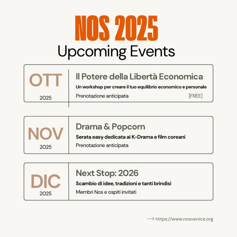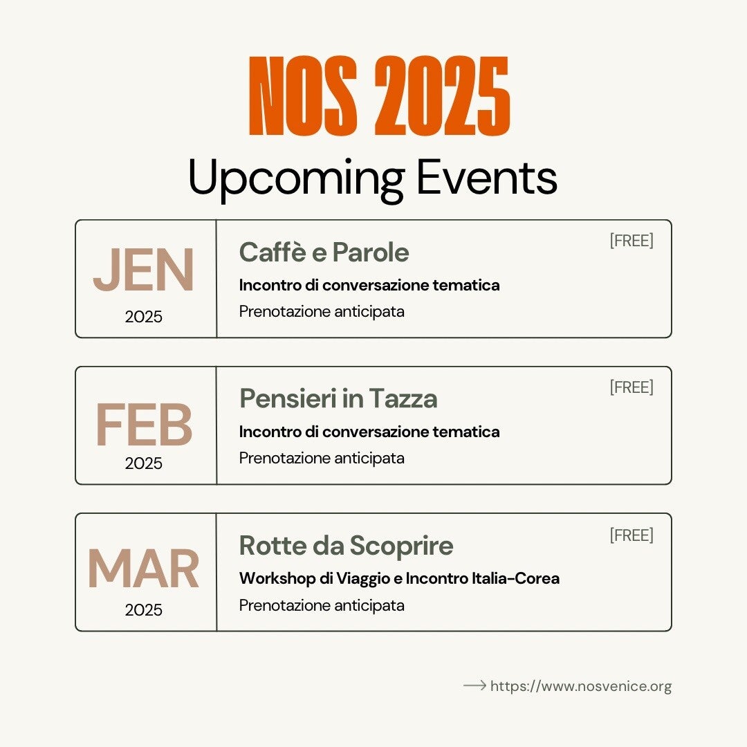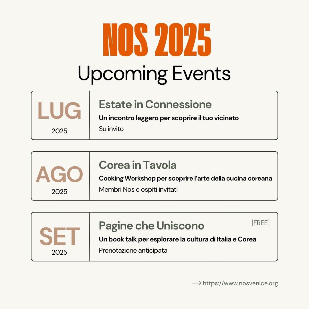 Welcome to the Events page of NOS, a nonprofit association located in the heart of Venice, dedicated to promoting culture, art, and language.
